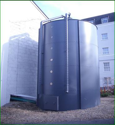 Commercial Pellet Store:We can supply V-Mac silos from 5 - 35 ton capacity as standard and we also have the ability to supply bespoke solutions up to 200 ton capacity.Our range includes silos enclosed down to the ground - protecting the cone and discharge area - this also provides additional security where the store is in a area of public access.We can supply partially or fully insulated silos. - The level of insulation required is largely dependent on the physical location of the store and the level of throughput. .Depending on requirements we can supply and fit silos with complete or partial silo safety elements including; overfilling alarms; pressure relief valves; compressed air jet filters, level indicators and control panels. |